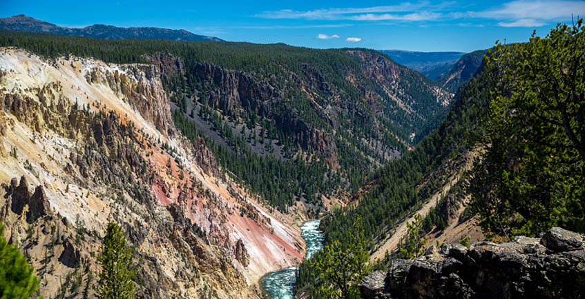 早餐后,驱车前往黄石国家公园(车程约110公里 /1.5小时)。地处北美“脊骨”洛矶山脉的黄石国家公园有着异常秀丽的自然景观,尤其是其无与伦比的地热奇观,同时这片土地也是无数野生动物的重要栖息地。徒步探寻黄石公园的自然景观(徒步距离约3公里 /1.5小时),沿途饱览华美与险峻并称的黄石大峡谷,欣赏黄石河下瀑布(Lower Waterfall)飞流直下的壮观景象。之后,途经海登山谷(Hayden Valley)前往黄石湖(Yellowstone Lake),入住位于湖畔的黄石湖酒店(Lake Yellowstone Hotel & Cabins)(入住1晚,湖景客房)。